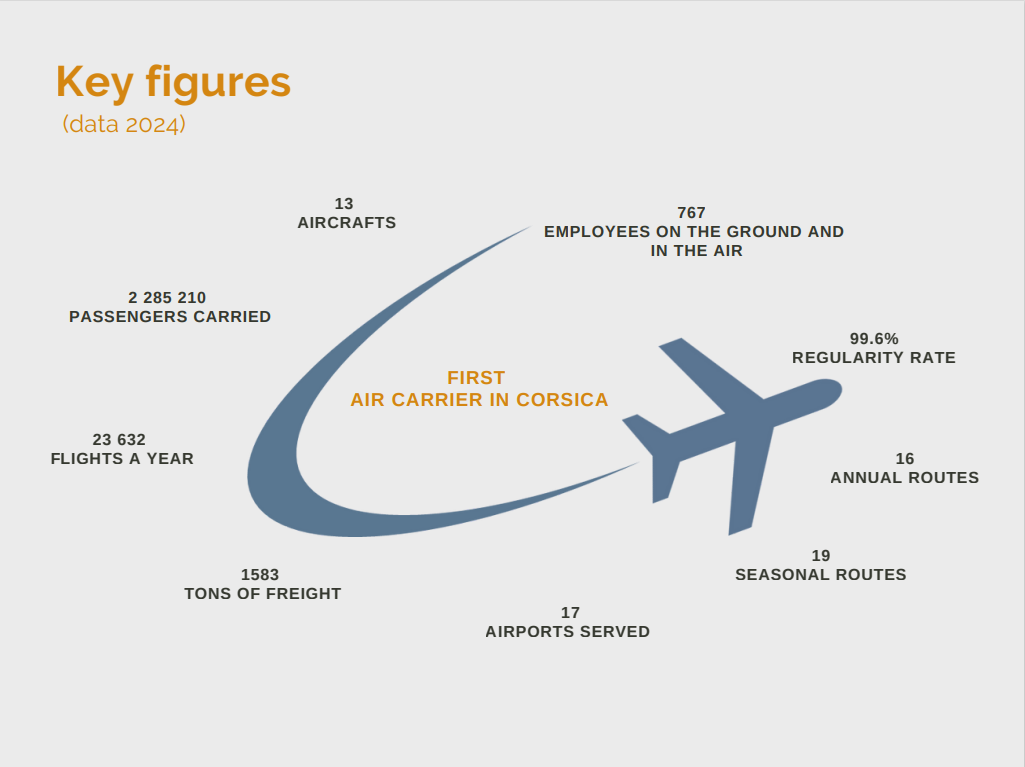 Da oltre 35 anni, Air Corsica è la compagnia aerea di riferimento della Corsica. Trasporta e soddisfa quasi 2.000.000 di clienti ogni anno, soddisfacendo i requisiti di qualità delle principali compagnie aeree internazionali.